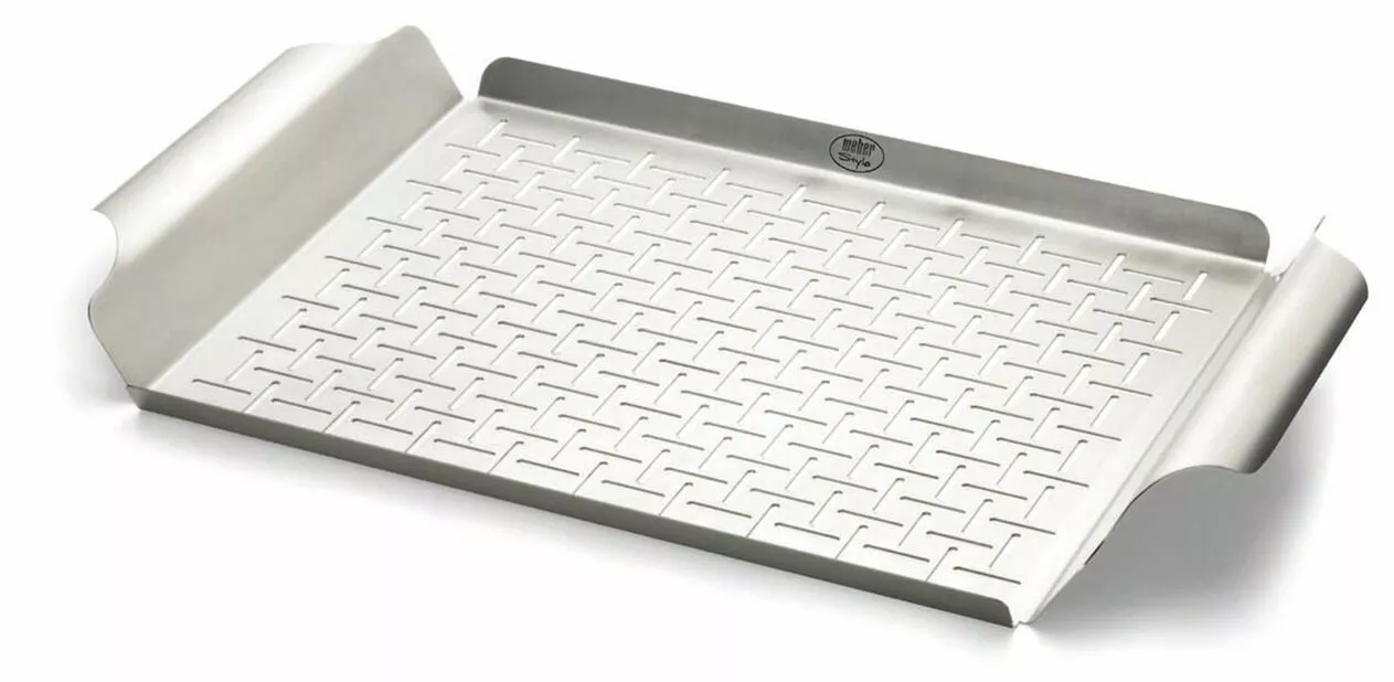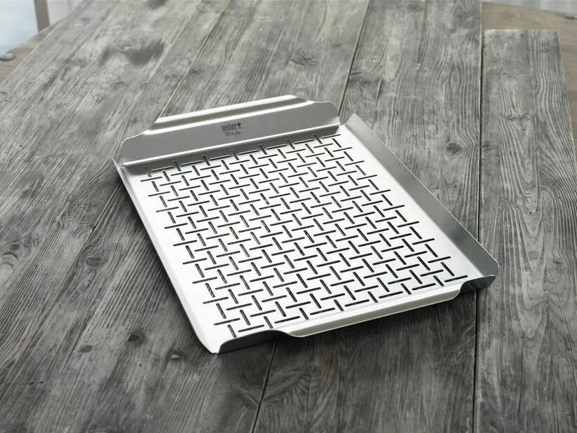 Praktisk grillform, som gjør det mulig å grille fisk, kylling, og tilbehør som enten fester seg eller forsvinner ned i grillristen. Kan vaskes i oppvaskmaskin.