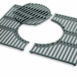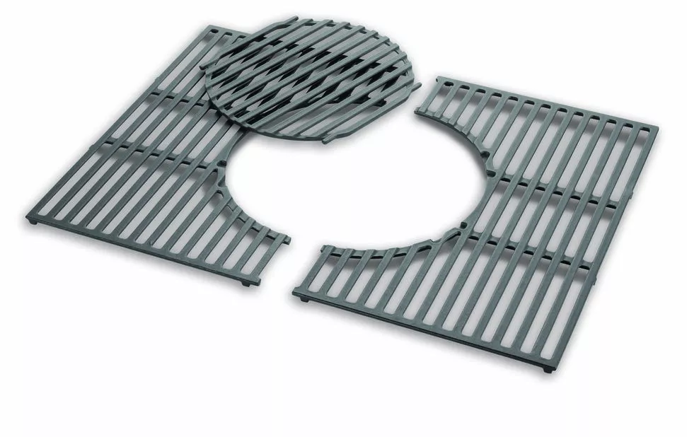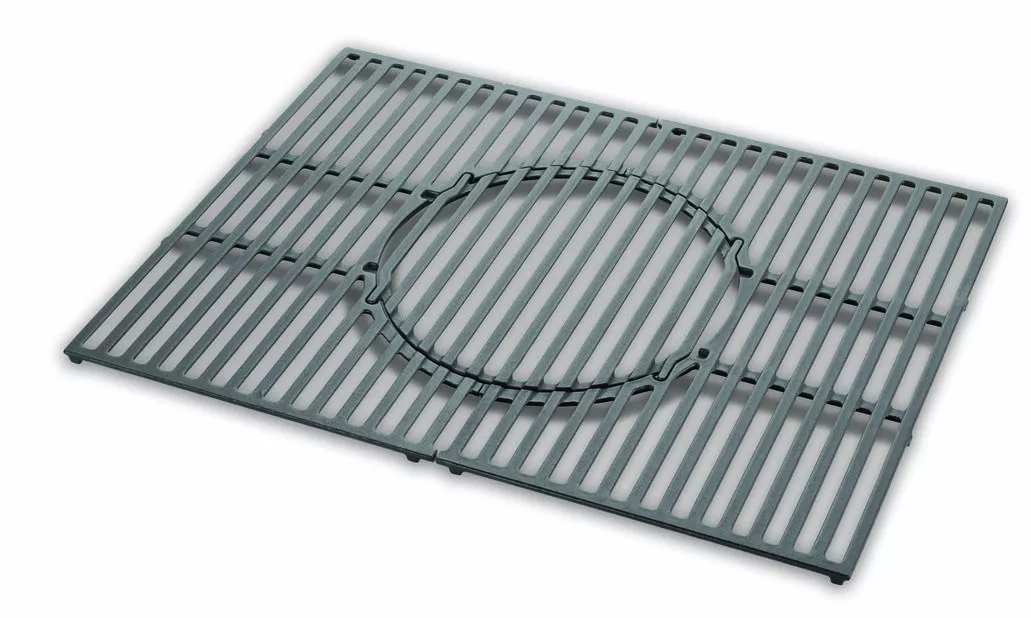 Todelt støpejernsrist fra Weber med avtakbar midtseksjon. Risten brukes sammen med Weber Gourmet BBQ System-innsatser og er tilpasset Genesis 300-serien.