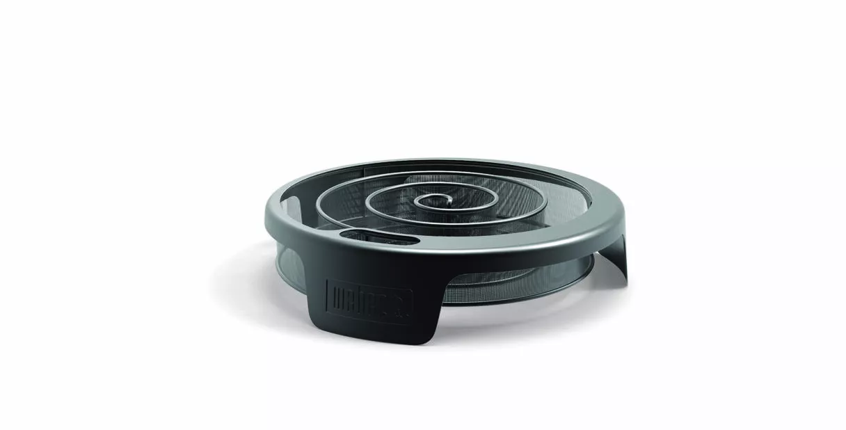 Kaldrøkingsformen fylles med røkespon og settes under risten på grillen