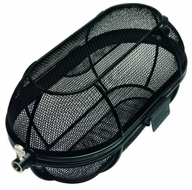 Finmasket kurv til tilberedning av små råvarer på rotisseriet, for eksempel pommes frites, popcorn, skalldyr og finsnittede grønnsaker.