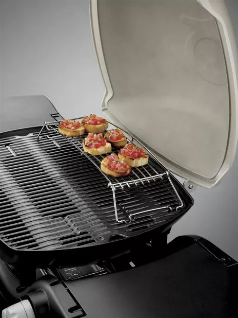 Smart varmehylle som løfter maten fra grillristen og gir deg ekstra plass å arbeide på, når du for eksempel griller bruschetta. Passer til Q 3000-serien.